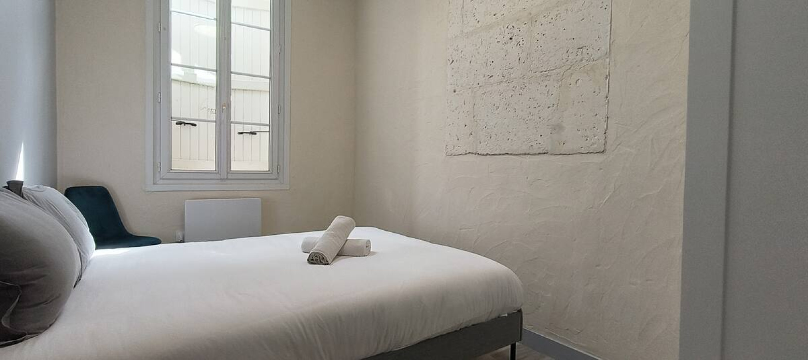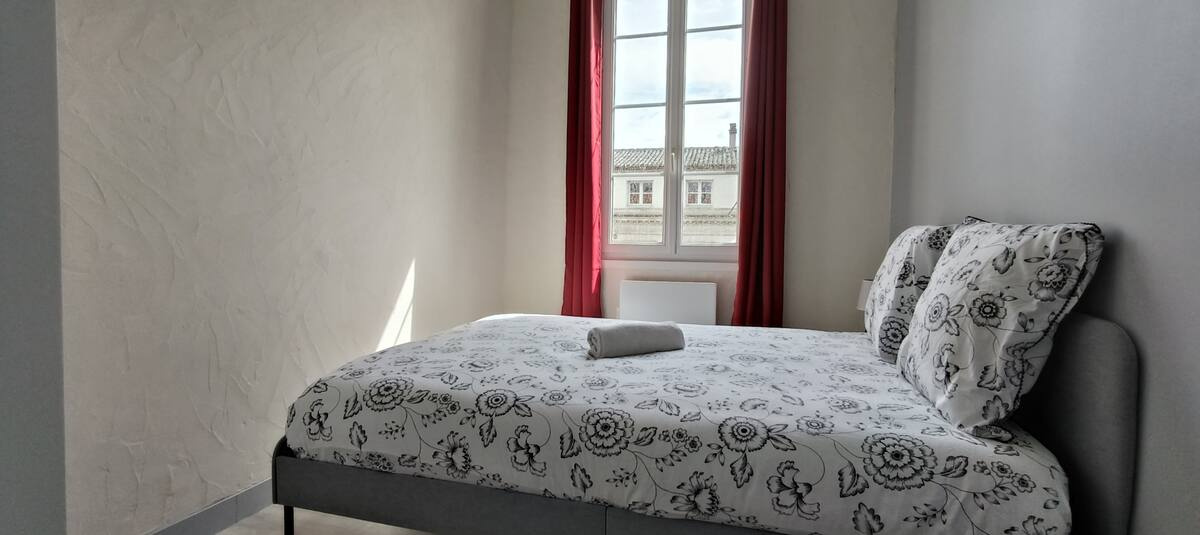 situé en plein centre d'Angoulême, rue de Beaulieu, au niveau de la Chapelle des Cordeliers. Dans un immeuble calme et sécurisé, l'appartement est situé au 2eme étage et comprend: - 2 chambres de 10 m² chacune, - salon/cuisine équipée (réfrigérateur, plaques vitro céramiques, four), - salle d'eau avec chauffe serviettes mural. Double vitrage, chauffage électrique. Murs isolés.