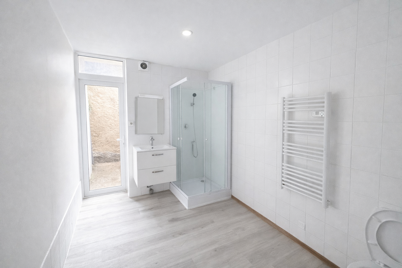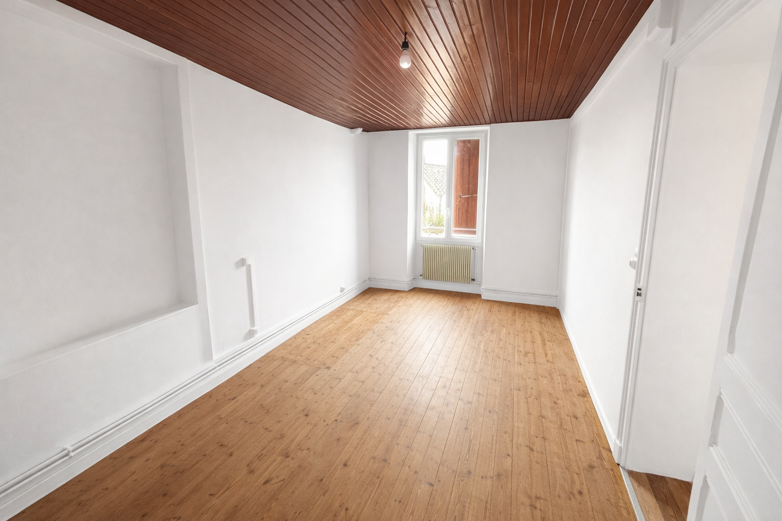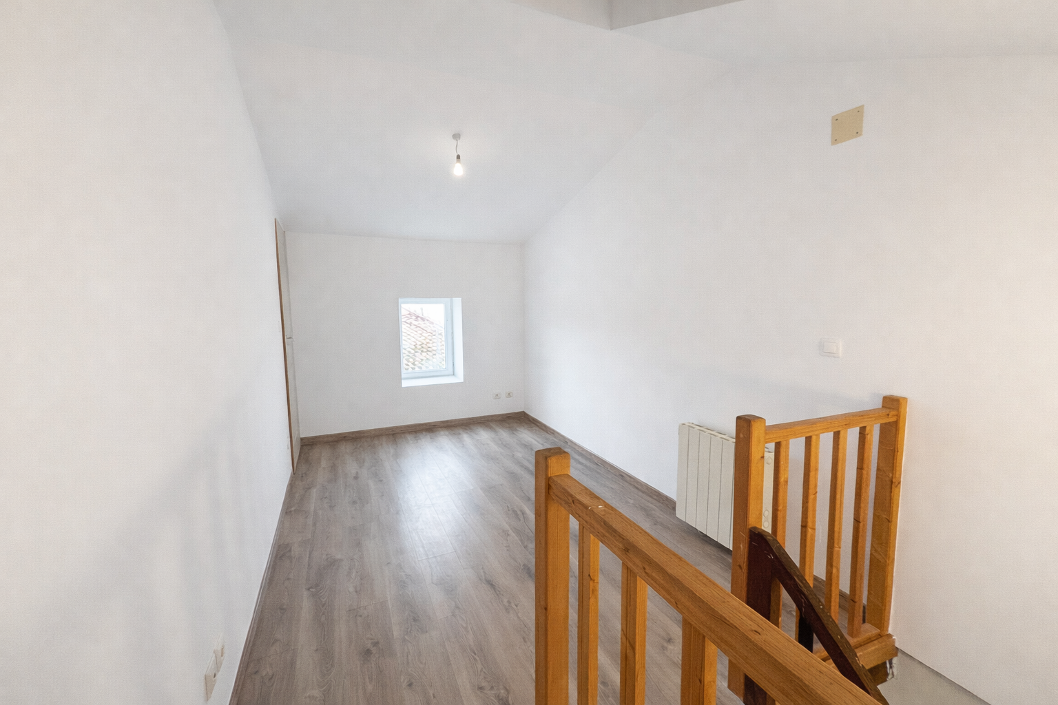 Maison de ville rénovée de 81m² sur 2 étages. Elle comprend au rez de chaussée entrée sur cuisine aménagée, salon, salle d'eau avec WC. Au 1er étage un palier pouvant servir de bureau, 2 chambres en enfilades. Au 2ème étage une pièce pouvant servir de 3ème chambre.