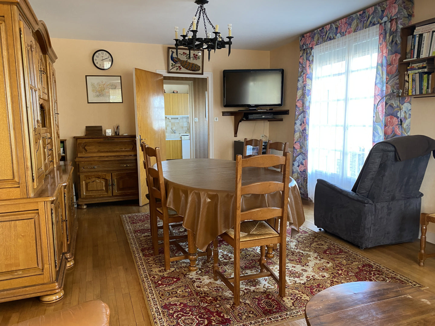 Cuisine séparée, séjour donnant sur balcon. 3 chambres.