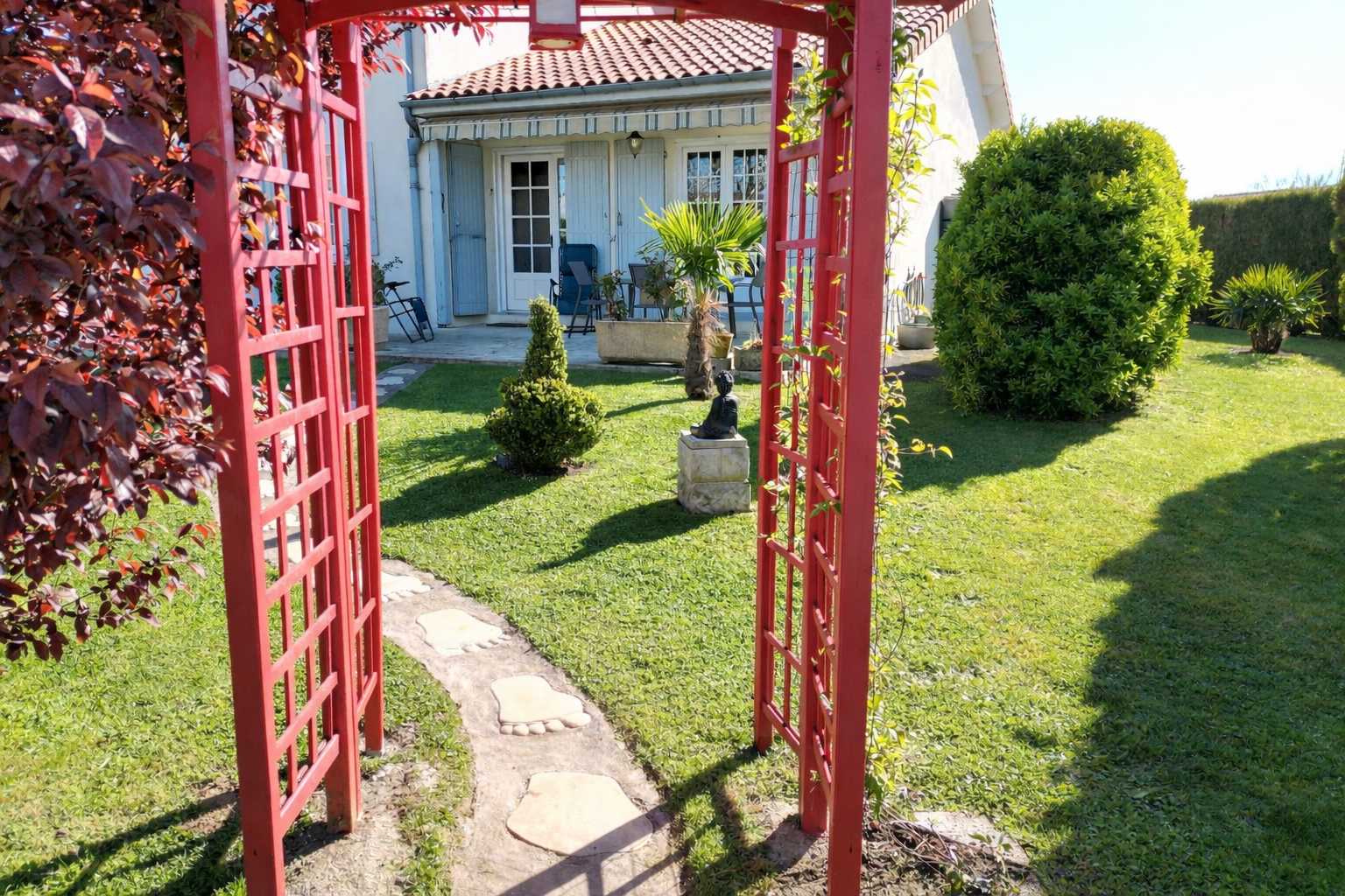 À l’extérieur, vous serez séduit par un jardin clos sans vis-à-vis, soigneusement aménagé avec une magnifique décoration de style japonais, véritable havre de paix. Une terrasse avec store vous permettra de profiter pleinement des beaux jours.