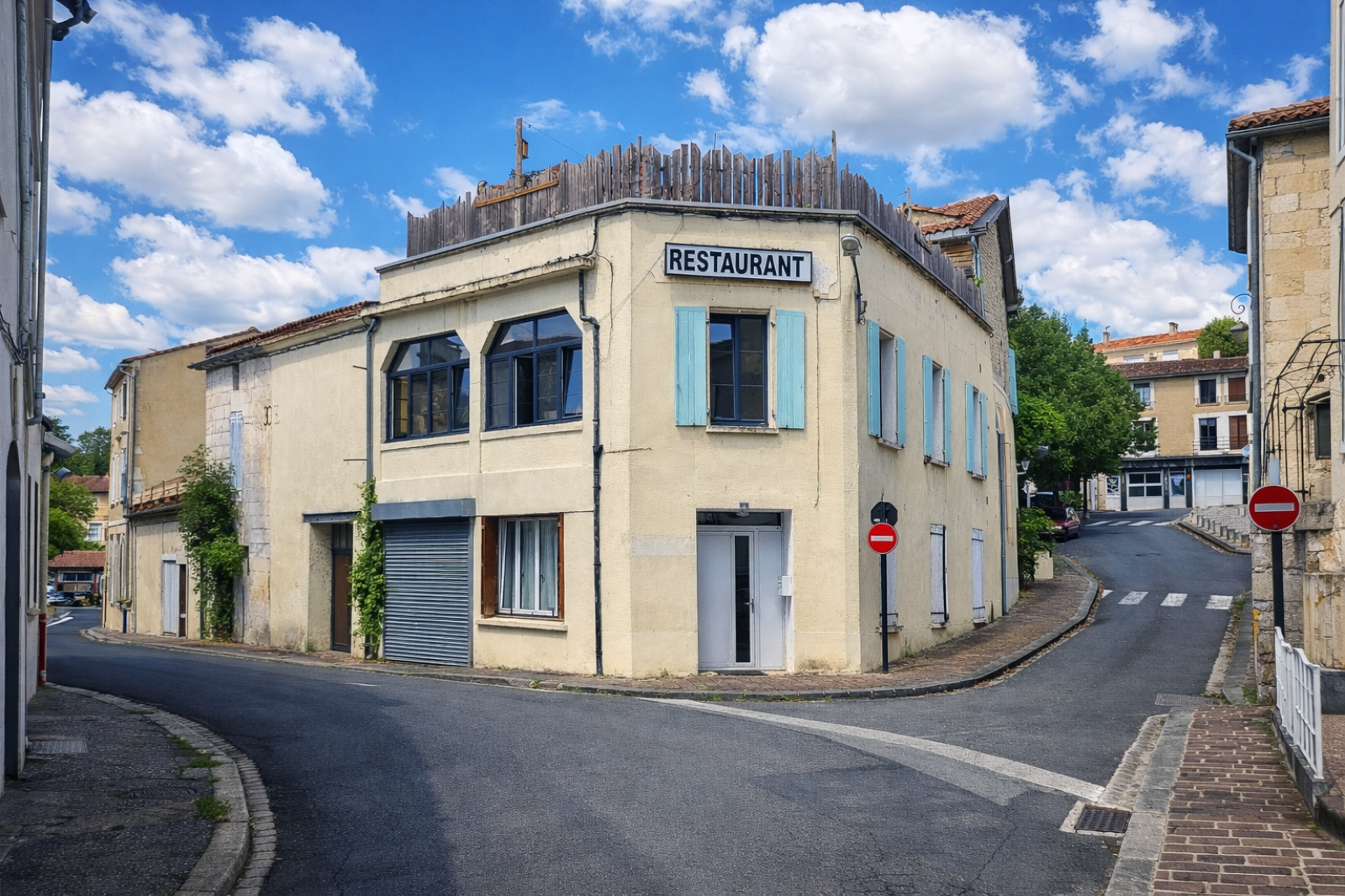 Immeuble en pierres début XXᵉ idéalement situé sur la place centrale de Blanzac-Porcheresse, offrant aujourd’hui un local commercial en rez-de-chaussée, deux appartements et un fort potentiel de création d’un troisième logement.