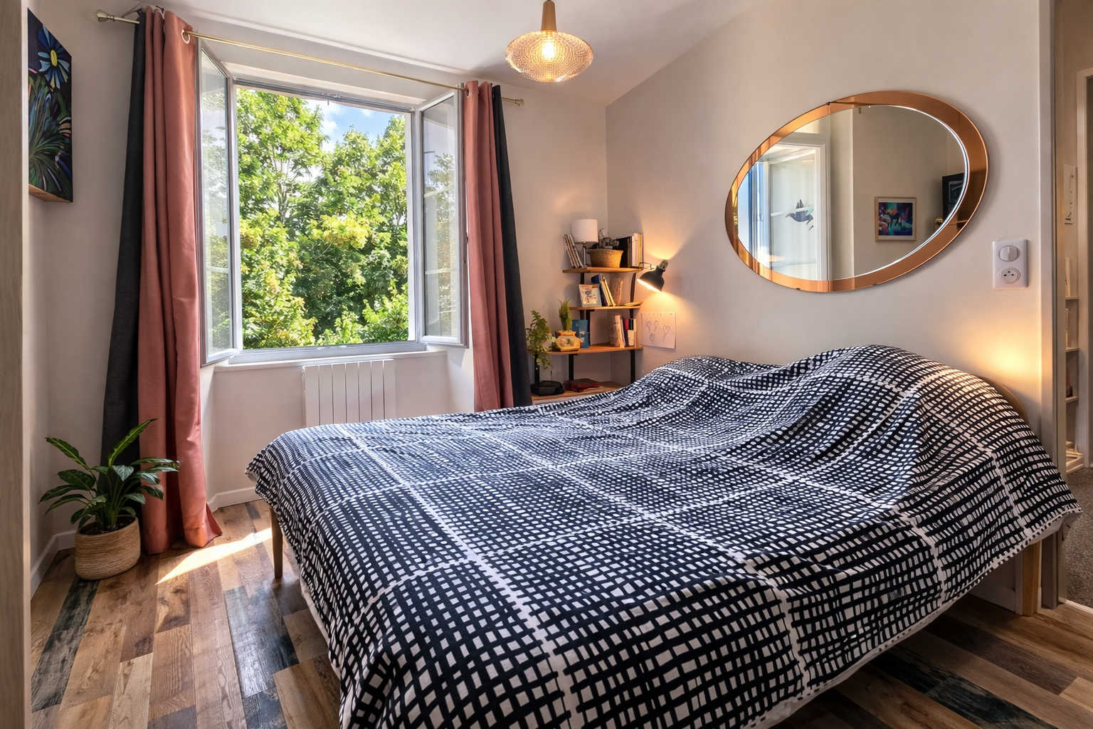 - Accès direct à une terrasse privative d’environ 100 m² avec vue panoramique sur les toits et la ville.
