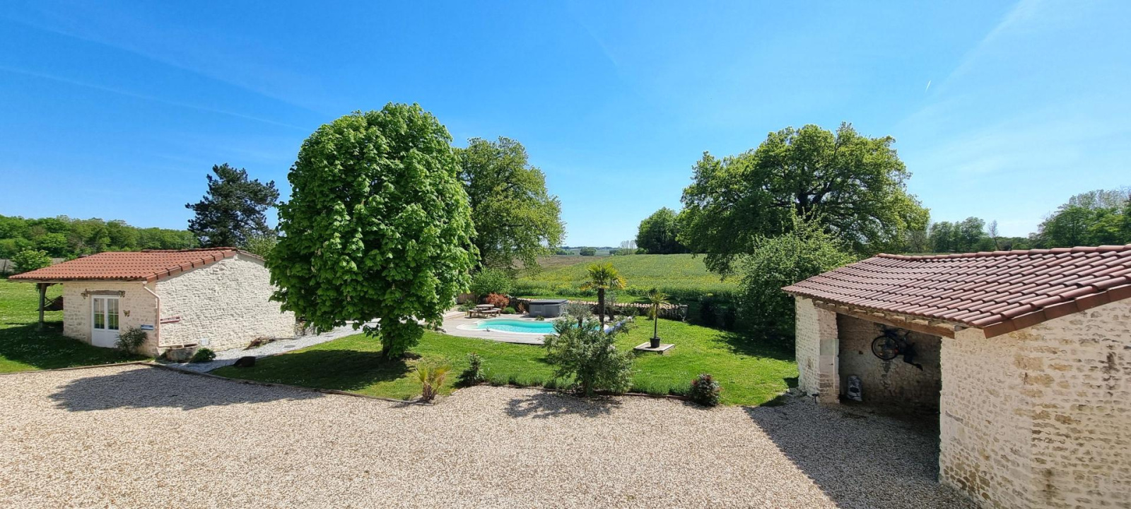 Nichée au cœur d'un écrin de verdure de plus de 11 000 m², la maison s'ouvre sur un jardin paysager, véritable havre de paix où chaque instant devient un moment d'exception. La luminosité, omniprésente dans toutes les pièces, se marie harmonieusement avec les poutres apparentes et les matériaux nobles qui confèrent une atmosphère chaleureuse et raffinée à l'ensemble de la propriété.