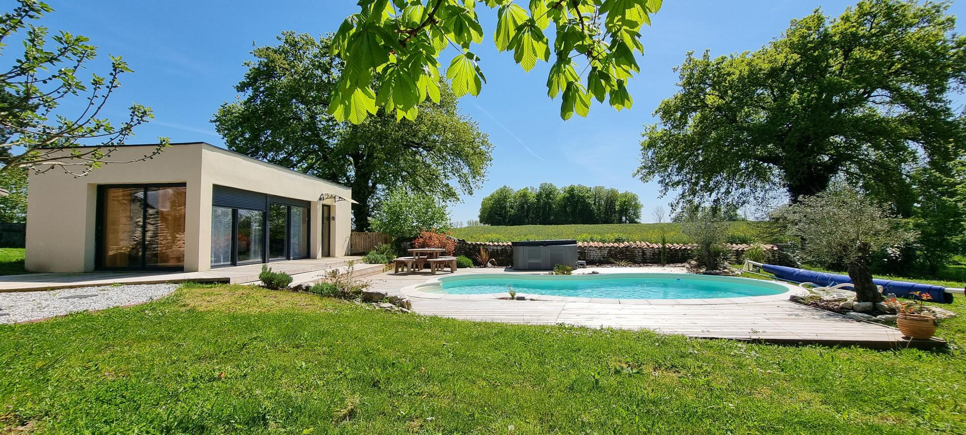Cette propriété haut de gamme est équipée de solutions éco-énergétiques innovantes, incluant 30 m² de panneaux solaires, une climatisation réversible, un chauffe-eau thermodynamique et un ballon d'eau chaude solaire. Le confort est également assuré par un insert à bois performant. L'extérieur offre une piscine chauffée, un espace détente avec jacuzzi accessible toute l'année, ainsi qu'un logement de tourisme meublé déjà générateur de revenus. Une grange fermée et un abri pour voitures complètent cet ensemble harmonieux.